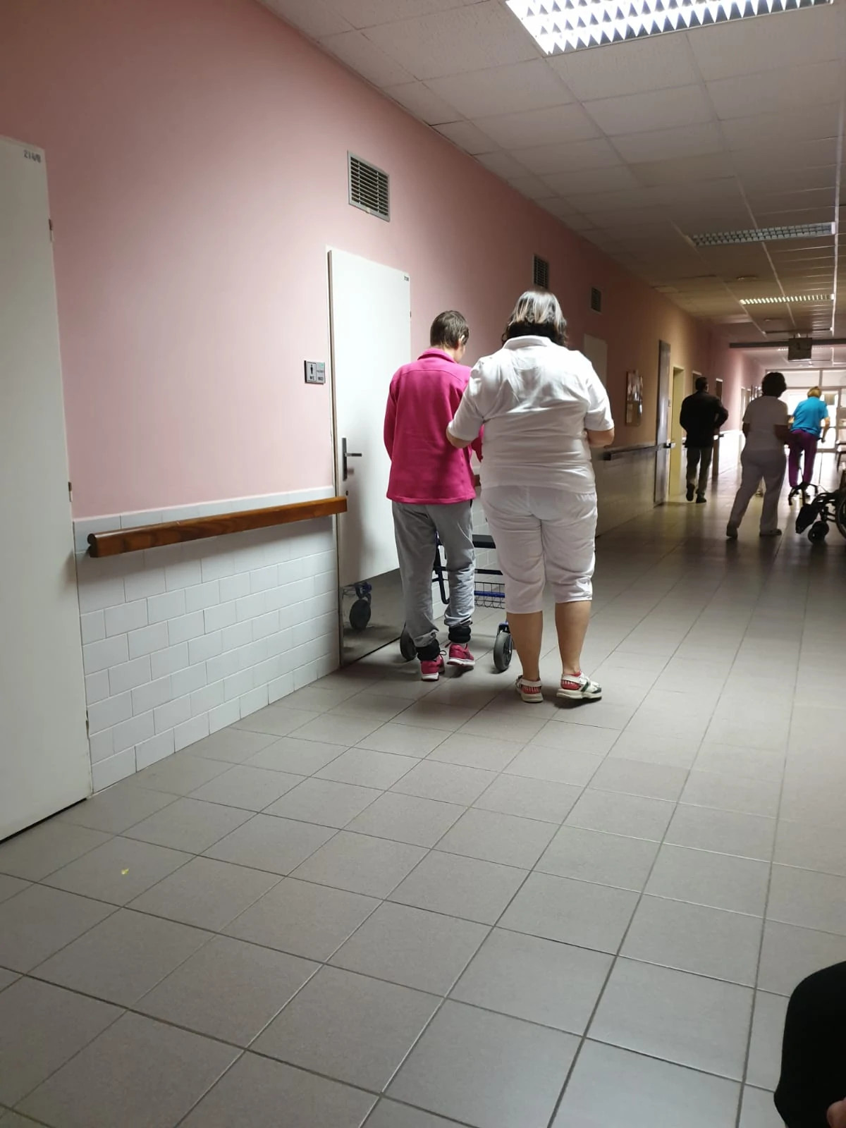 A na chodbě byl rotoped. Já jsem vždycky řekla sestrám, že na něj jdu. Aby mě nehledaly nebo tak. Každý den jsem si dávala o 100m víc. Každý den kolem mě chodil jeden pán a když kolem mě šel asi 5. den, tak tak chválihodně pokýval hlavou. Měla jsem radost. Každý den jsem na tom rotopedu byla. Chtěla jsem se hrozně zlepšit a normálně fungovat.